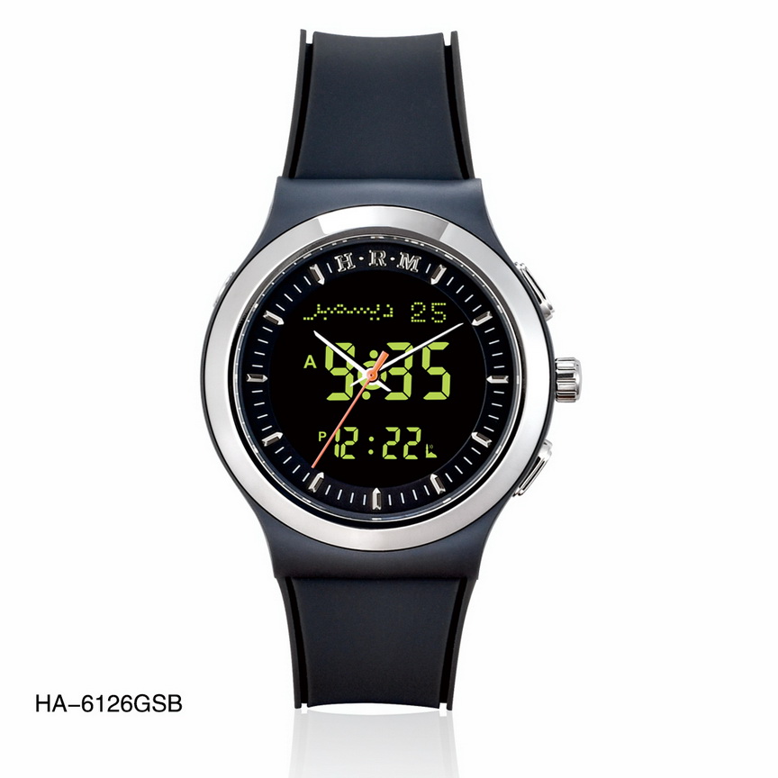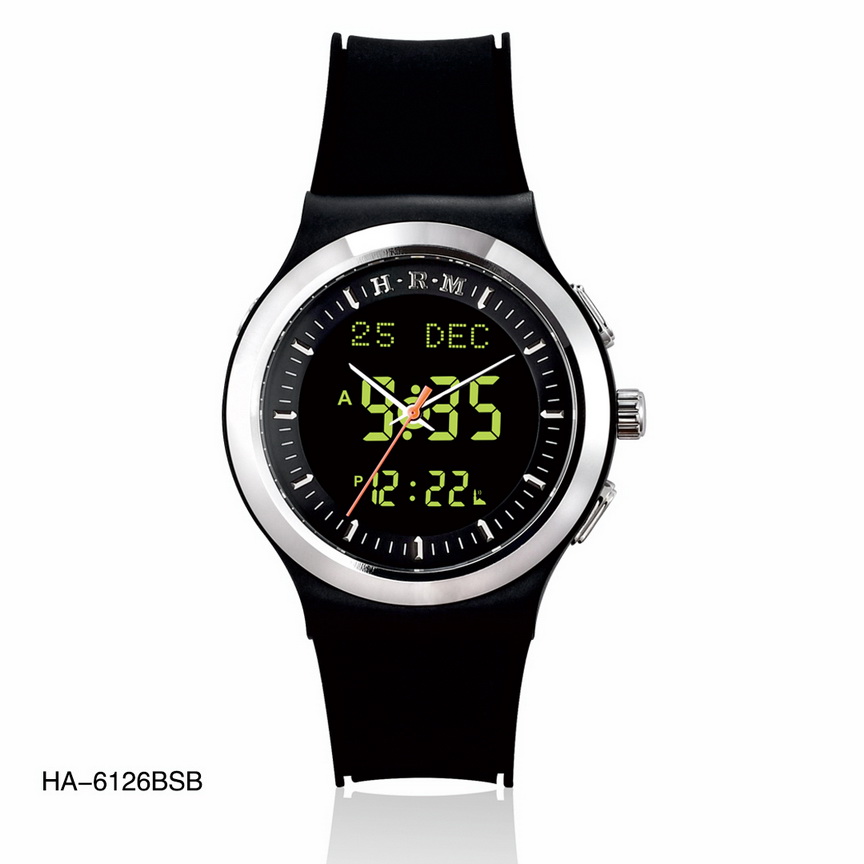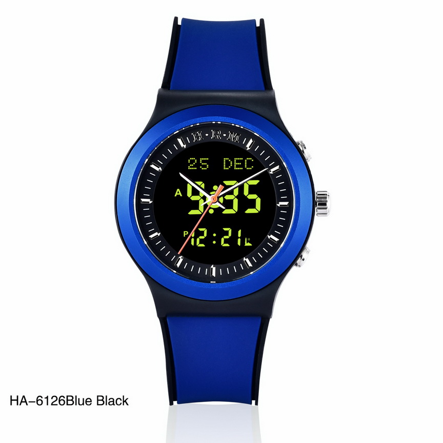 ساعة ذات إطار دائري بلاستيك وحزام من المطاط عالي الجودة